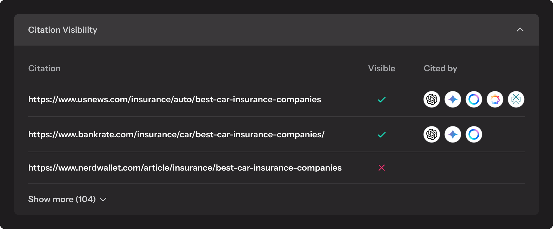 Find, monitor, and enhance sources that are cited by LLMs and influence your brand’s AI visibility across the industry.